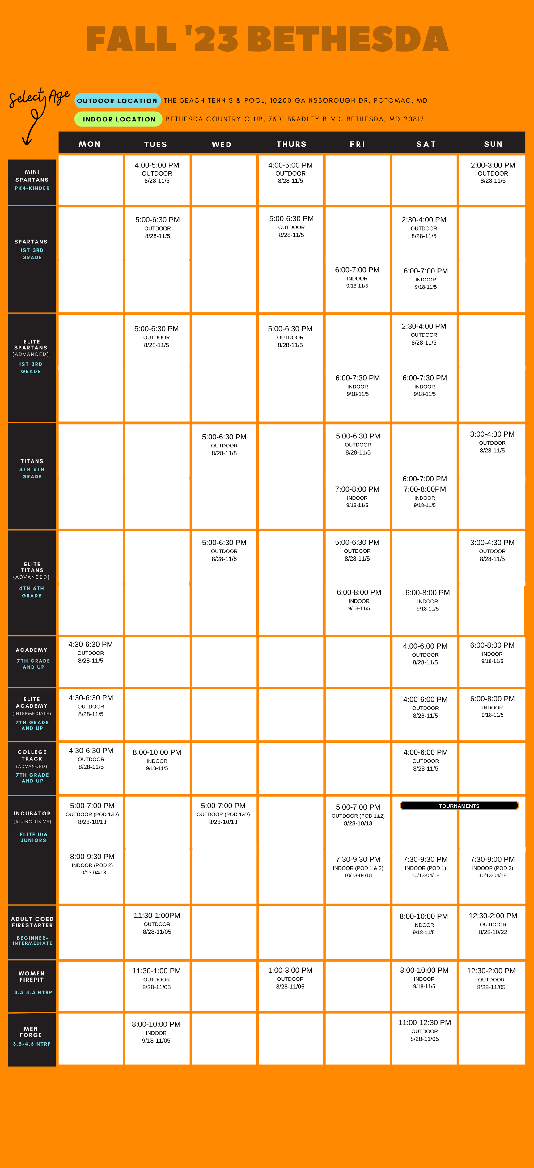 For the FALL INDOOR season, play at the exclusive Bethesda Country Club indoor courts at the same rate of our outdoor programs for a limited time!